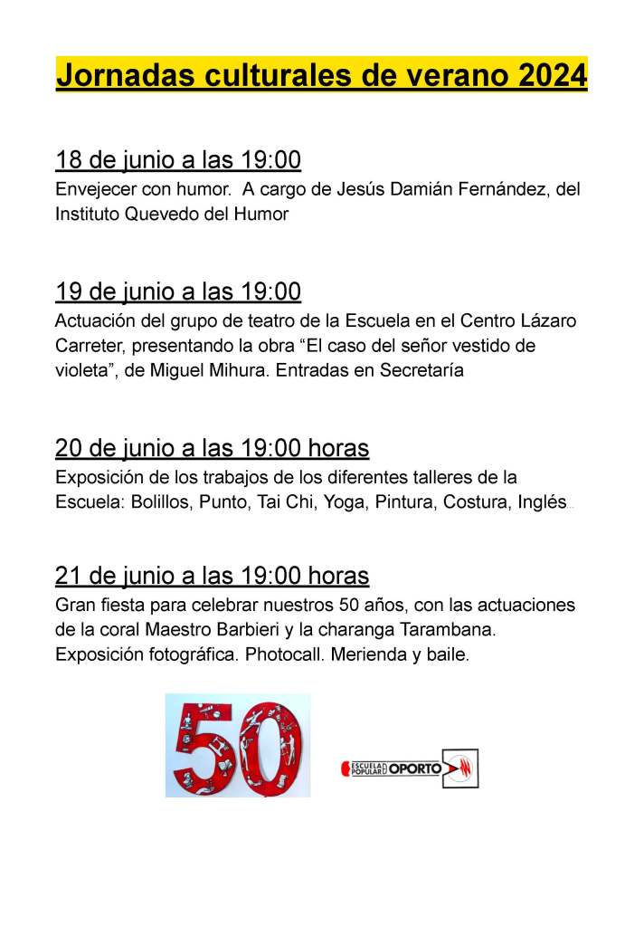 ABAJO PUEDES VER LAS FOTOS DE LAS JORNADAS CULTURALES DE VERANO, JUNIO 2024