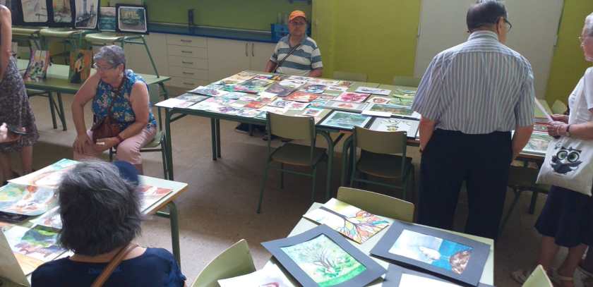 En el TALLER DE PINTURA dibujan sobre imágenes que manda la monitora, también hacen dibujos a bolígrafo: pulsa aquí para acceder